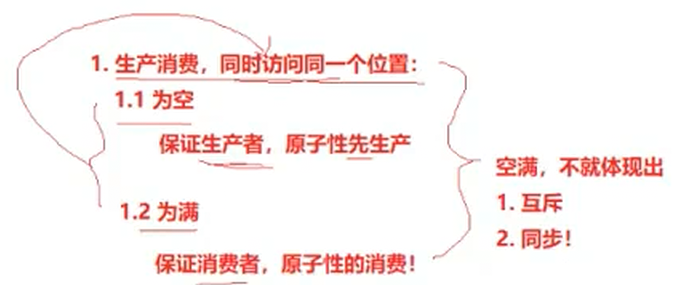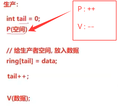 {using namespace SemModule;template<class T>class RingBuffer{public:RingBuffer(int cap):_ring(cap),_cap(cap),_p_step(0),_c_step(0),_datasem(0),_spacesem(cap){}void Equeue(const T& in){//生产者_spacesem.P();_ring[_p_step] = in;_P_step++;_p_step %= _cap;_datasem.V();}void Pop(T* out){//消费者_datasem.P();*out = _ring[_c_step];_c_step++;_c_step %= _cap;_spacesem.V();}~RingBuffer(){}private:std::vector<T> _ring; //环,临界资源int _cap; //容量int _p_step; //生产者位置int _c_step; //消费者位置Sem _datasem; //数据信号量Sem _spacesem; //空间信号量};