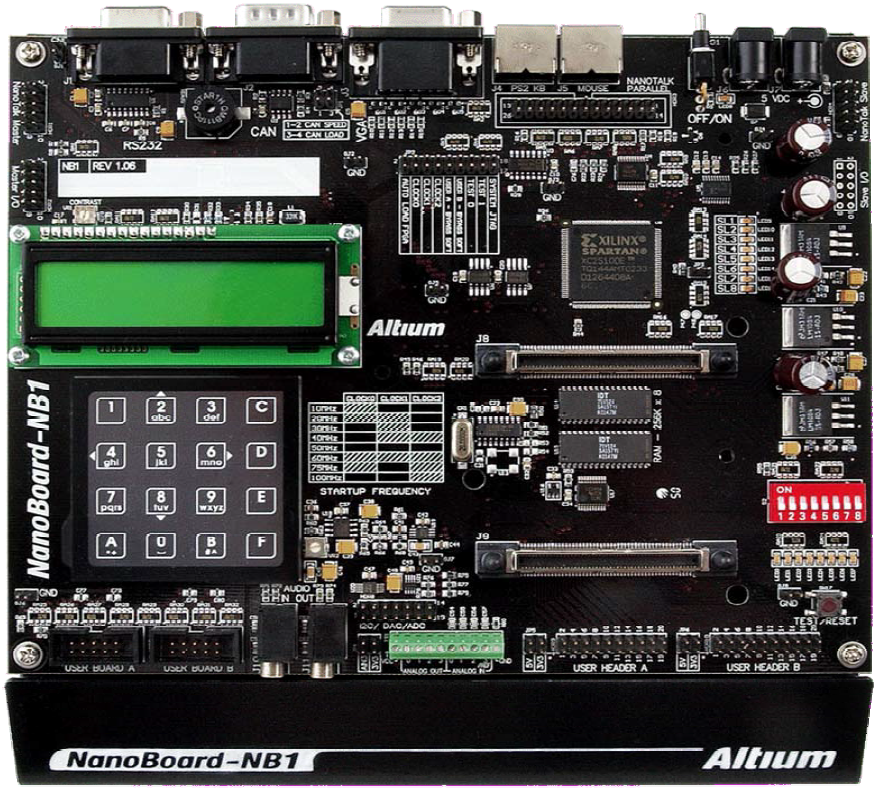NanoBoard NB1 开发板和板上的逻辑可编程芯片一起组成了可重新配置的系统设计验证平台
