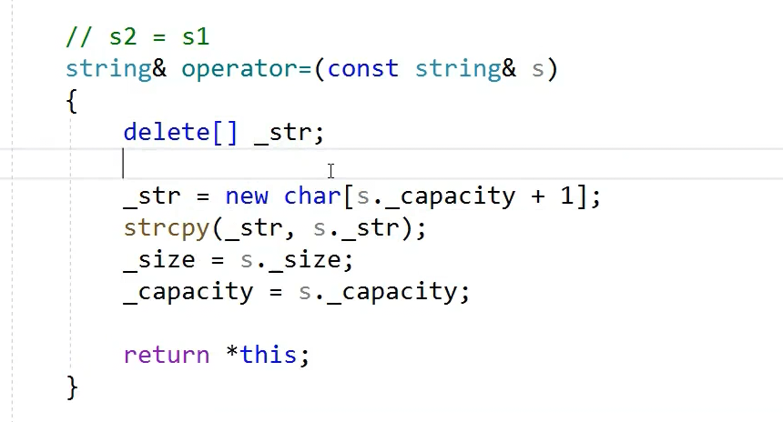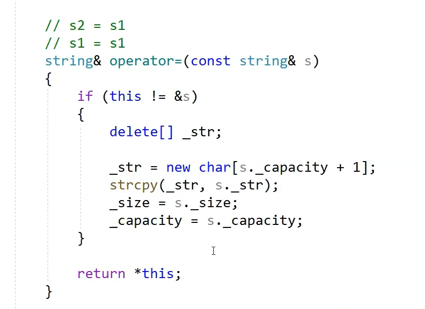 不写赋值默认生成的也是浅拷贝的赋值,还导致s之前的空间直接丢掉了,