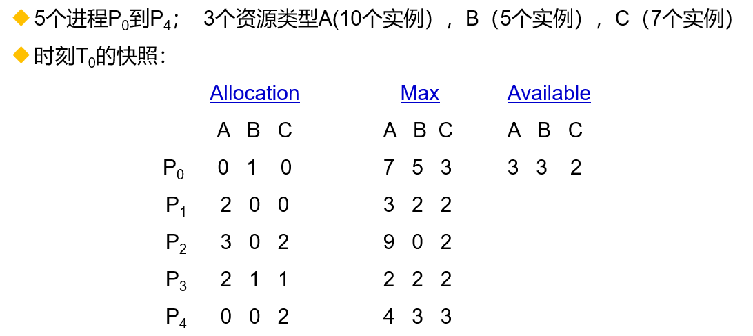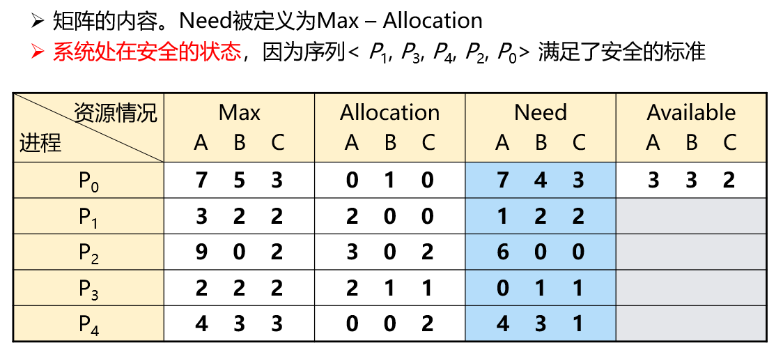 最大需求(Max):每个进程最多要多少资源(提前声明)。