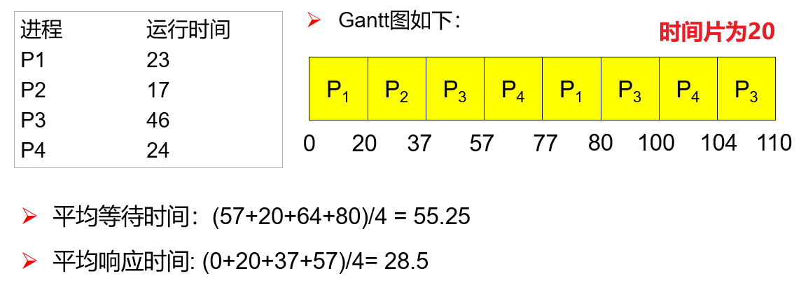 时间片轮转:类似于FCFS,但增加了抢占,(时间片 / 10 > 进程上下文切换时间)