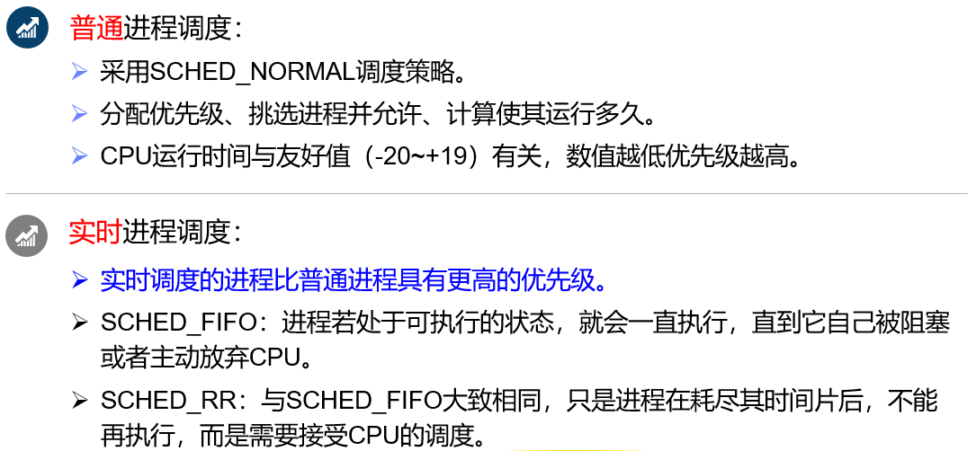静态优先级:在创建进程时,确定优先数,在进程运行的整个过程中不变,可能会出现优先级低的进程长期没有被调度的情况