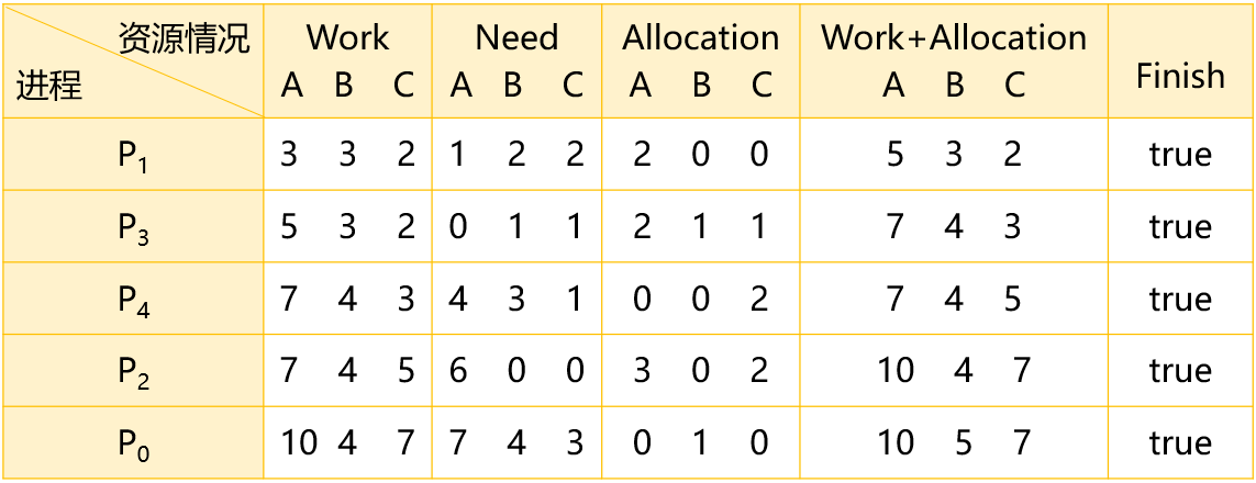 每个进程申请资源时,先假装同意,然后检查: “如果给了它,剩下的资源还能不能让所有进程都顺利完成?”