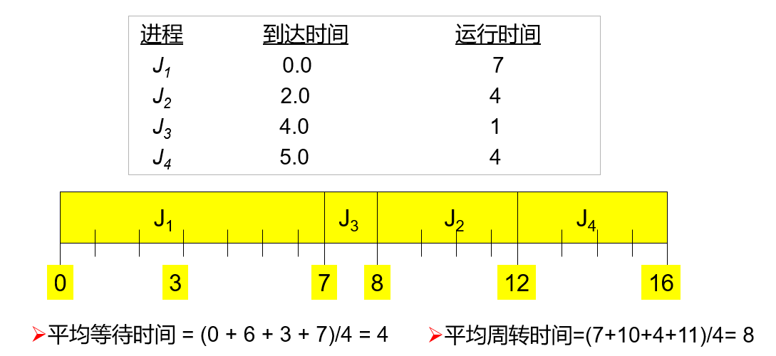 抢占式:有比当前进程剩余时间片更短的进程到达时,先执行运行时间短的