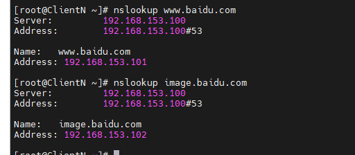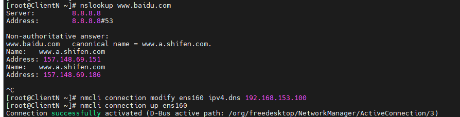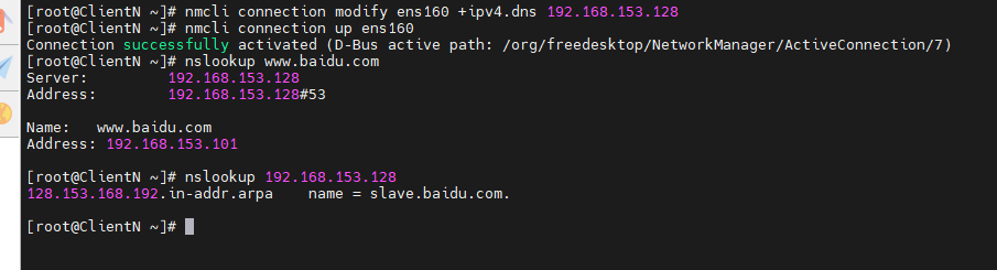 #添加dns为从服务器,然后查询百度
