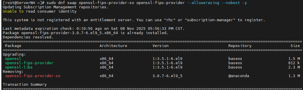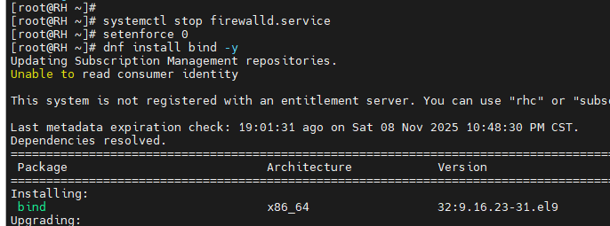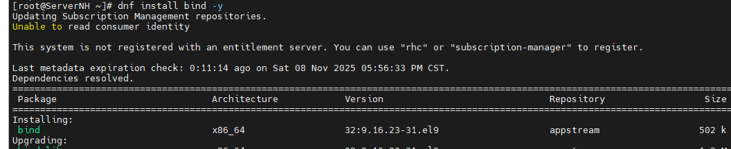 #如果安装bind的出现错误时,看报错信息,比如要安装的openssl-fips-provider与openssl-fips-provider-so有冲突,执行一下命令:dnf swap openssl-fips-provider-so openssl-fips-provider --allowerasing --nobest -y,然后再装一次bind