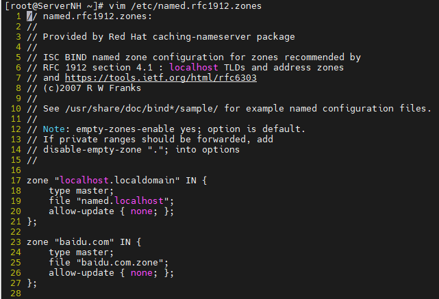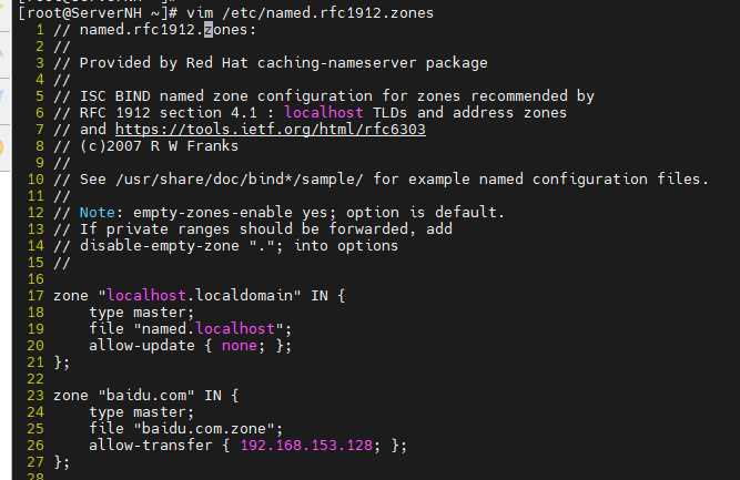 #编辑区域声明文件named.rfc1912.zones,模仿添加反向解析区域文件