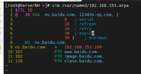 #编辑反向解析区域数据文件192.168.153.arpa,添加从服务器解析