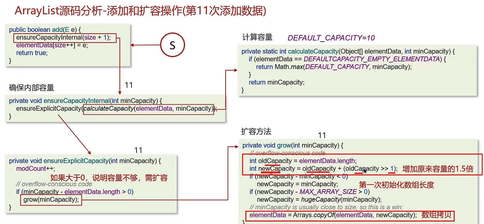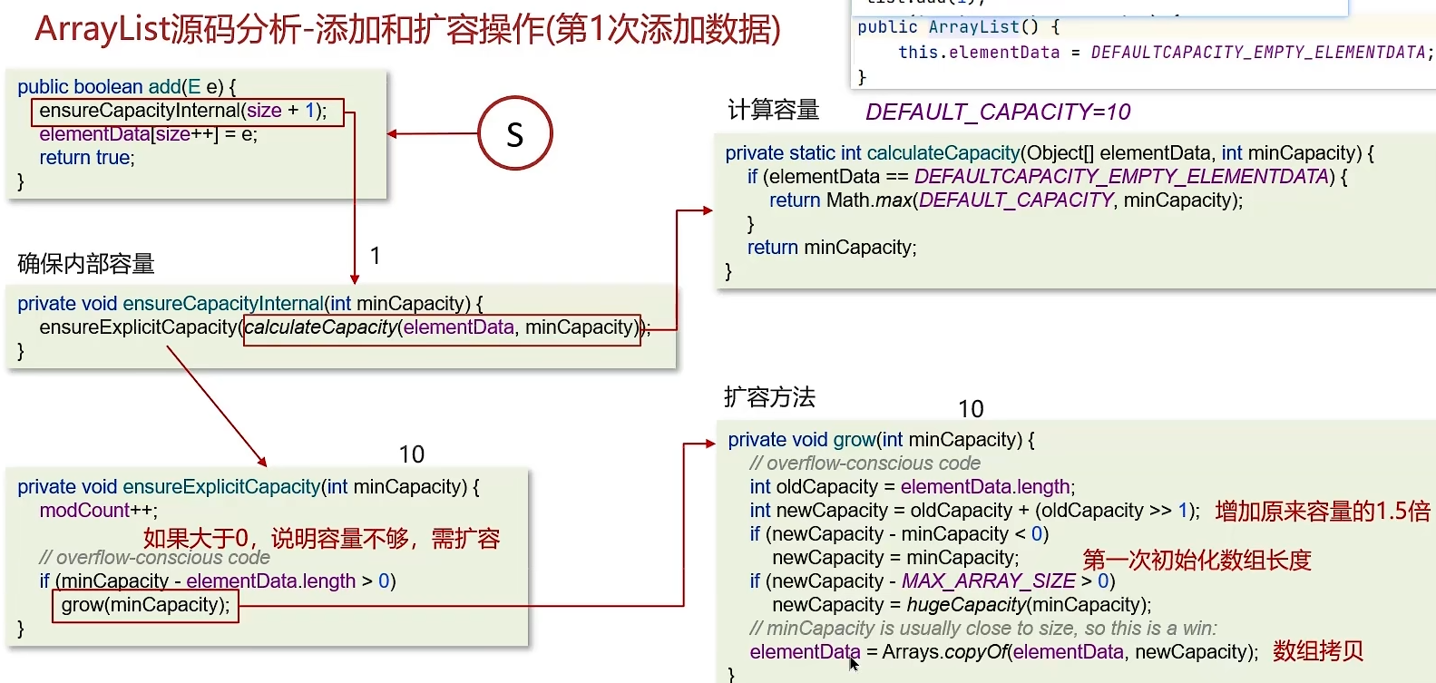 4. ArrayList添加数据的过程如下: