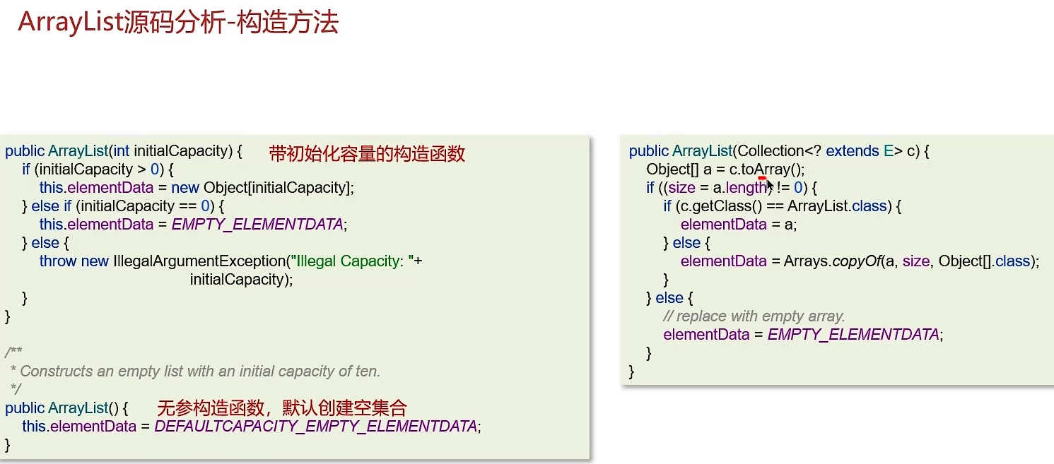 2. ArrayList使用无参构造时,初始容量为0,当第一次添加数据时会初始化容量为10