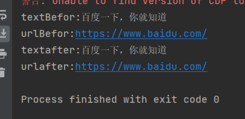 我们先看看前面的代码,我们的driver的作用域是在百度一下的中国界面,我们跳转之后,页面虽然变化了,但是driver没有变,我们验证一下: