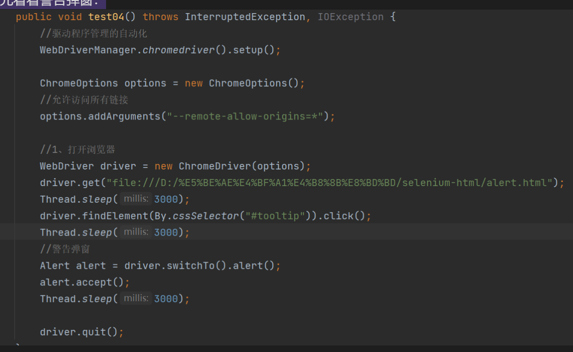 弹窗是在⻚⾯是找不到任何元素的,这种情况怎么处理?使⽤selenium提供的Alert接口