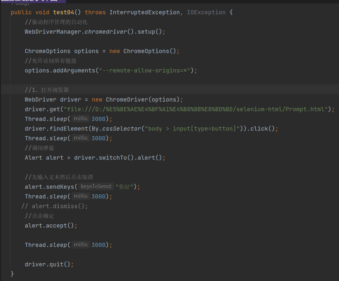 开启关闭很快但是代码就是这个样子,总结就是找出弹窗,点击确定或者取消。以及输入文本,打印文本.