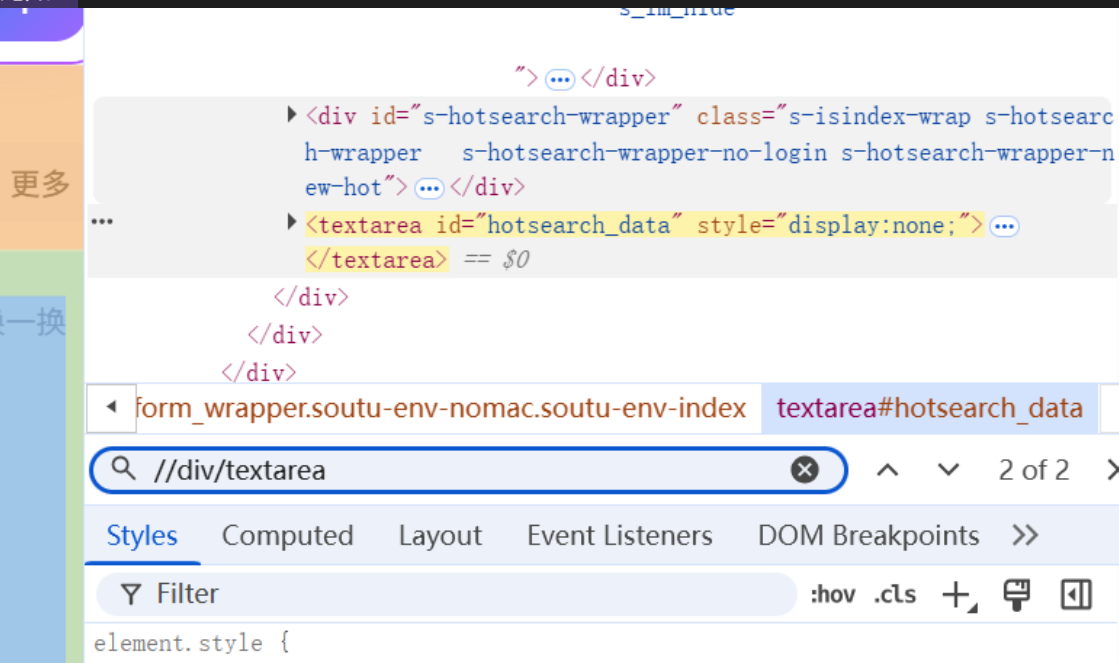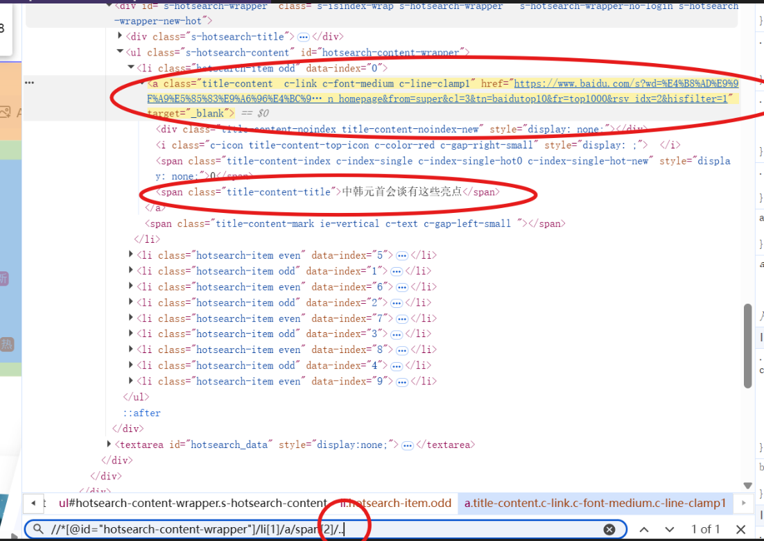 百度⾸⻚通过://div/ul/li[3] 定位到第三个百度热搜标签
