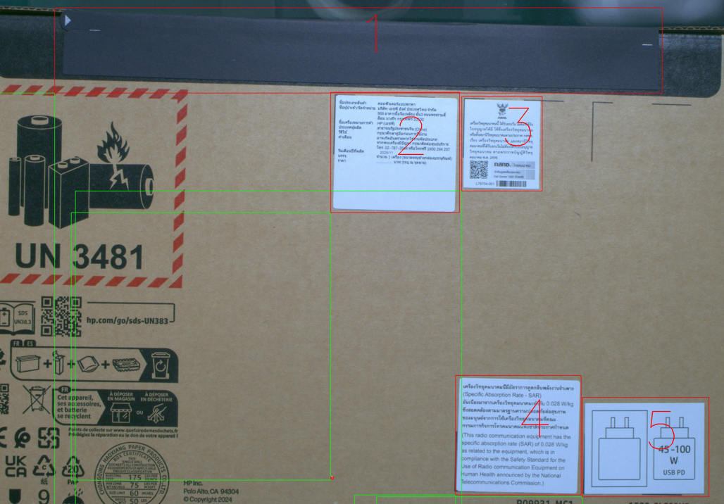 import osdef test():path = "D:\LAELAOI\Test"pointtxt = os.path.join(path, "label_position.txt")with open(pointtxt, 'r')as f:content = f.readlines()print(content)boxes = []for i in content:parts = i.split(',')file = parts[0]x1, x2, y1, y2 = parts[2],parts[3],parts[4],parts[5].strip()print(file, x1, y1, x2, y2)boxes.append([x1, y1, x2, y2])# 进行排序# key=lambda box: (int(box[1]), int(box[0])) 表示:# 1. 先按 box 的第 1 个元素(y1)进行升序排序(从上到下)# 2. 如果 y1 相同,再按第 0 个元素(x1)进行升序排序(从左到右)# 3. int() 是为了将字符串转为数字,确保正确排序sorted_boxes = sorted(boxes, key=lambda box: (int(box[1]), int(box[0])))img = cv2.imread(r"D:\LAELAOI\Test\L_main_CAM_basler.jpg")# img = cv2.resize(img, (1500, 1000))copy_img = img.copy()# 遍历排序后的列表,进行编号(从1开始)# for index, box in enumerate(sorted_boxes, 1):# x1, x2, y1, y2 = int(box[0]), int(box[1]), int(box[2]), int(box[3])# cv2.rectangle(copy_img,(int(box[0]),int(box[1])), (int(box[2]),int(box[3])), (0,0, 255), 2)# print(f"编号: {index}, 坐标: {box}")# --- 主要修改和新增的逻辑在这里 ---for index, box in enumerate(sorted_boxes, 1):# 1. 将字符串坐标转换为整数x1, y1, x2, y2 = map(int, box)# 2. 【关键修复】确保坐标顺序正确,防止计算负数半径# 重新计算左上角和右下角坐标,确保 x1 <= x2, y1 <= y2top_left_x = min(x1, x2)top_left_y = min(y1, y2)bottom_right_x = max(x1, x2)bottom_right_y = max(y1, y2)# 3. 绘制矩形框(使用修正后的坐标)cv2.rectangle(copy_img, (top_left_x, top_left_y), (bottom_right_x, bottom_right_y), (0, 0, 255), 2)# --- 新增代码开始 ---# 4. 计算矩形中心点center_x = (top_left_x + bottom_right_x) // 2center_y = (top_left_y + bottom_right_y) // 2# 7. 在圆圈中心写入编号font = cv2.FONT_HERSHEY_SIMPLEXtext = str(index)# 计算文字大小,以便居中(text_width, text_height), baseline = cv2.getTextSize(text, font, 1, 2)# 计算文字的坐标,使其在圆圈内居中text_x = center_x - text_width // 2text_y = center_y + text_height // 2# 绘制文字# 参数:图像, 文字, 坐标, 字体, 大小, 颜色(白色), 粗细cv2.putText(copy_img, text, (text_x, text_y), font, 10, (0, 0, 255), 3)# --- 新增代码结束 ---print(f"编号: {index}, 原始坐标: {box}, 修正后坐标: {[top_left_x, top_left_y, bottom_right_x, bottom_right_y]}")cropped_img = img[y1:y2, x1:x2]savefile = r"D:\LAELAOI\Test\{}.jpg".format(index)print(savefile)cv2.imwrite(savefile, cropped_img)cv2.imwrite(r"D:\LAELAOI\Test\1111L_main_CAM_basler.jpg", copy_img)cv2.imshow('rr', copy_img)cv2.waitKey(0)cv2.destroyAllWindows()