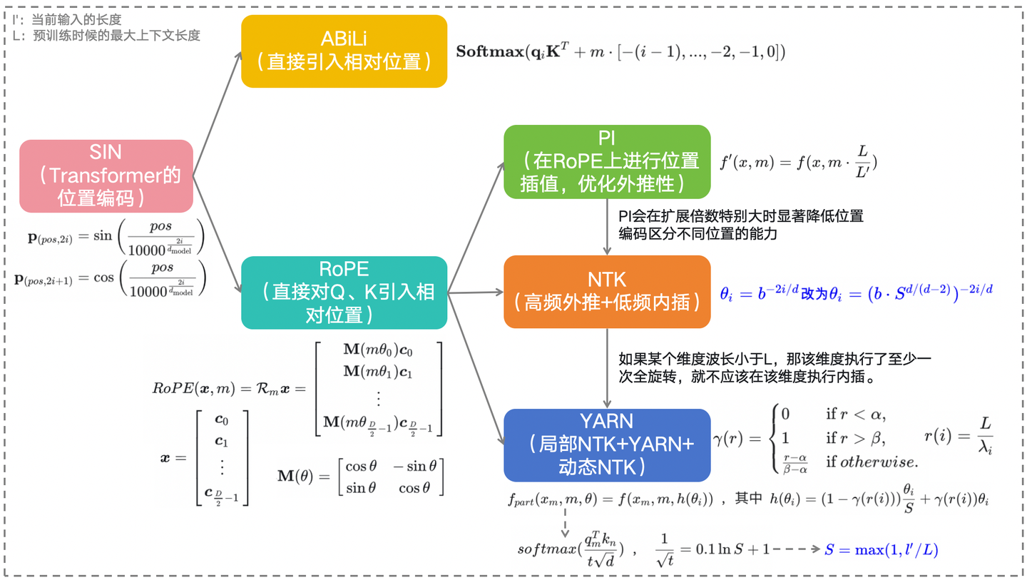 前言:假期翻看了一年前总结的有关位置编码的笔记,发现在某些角度上有了新的理解,本次也分享出来。本文讲解的顺序是:SIN->ALiBi->RoPE->PI->NTK->YARN,公式较多,建议pc端食用。
