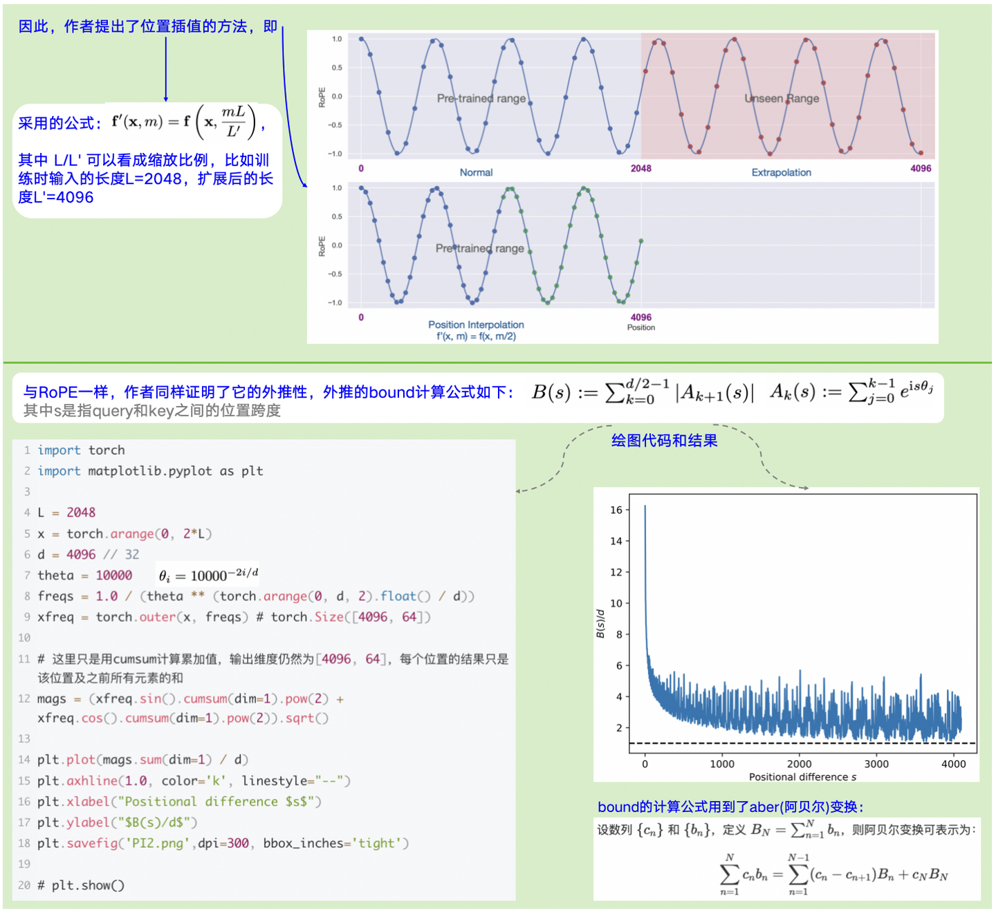 - 如果波长大于L,此时编码了绝对位置的维度,应该进行内插以防止超出绝对位置的最大可编码范围;