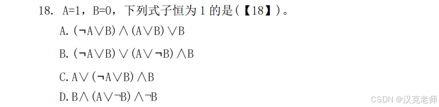 一、逻辑运算(真与假) 1、先看往届真题: 2、符号解释(逻辑符号与C++符号对照) 数学逻辑符号 读法 含义 C++ 对应符号 举例(C++) 结果 ¬A 非A 把真假反过来 !A 如果 A 是 true,则 !A 是 false ∨