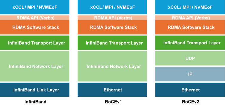 图1 RoCE和IB协议栈对比