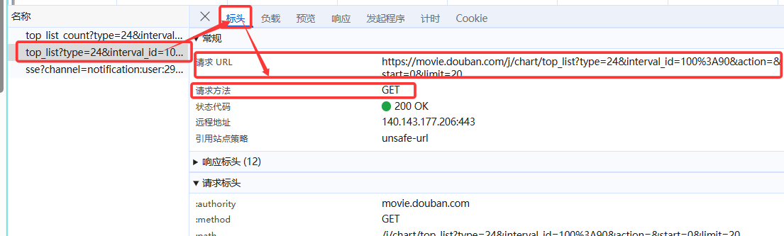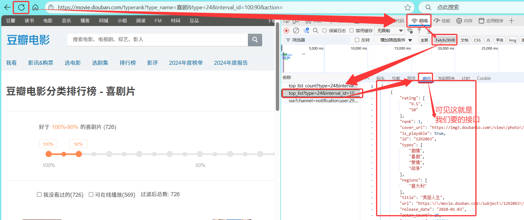 二.找响应豆瓣喜剧电影排行数据的接口