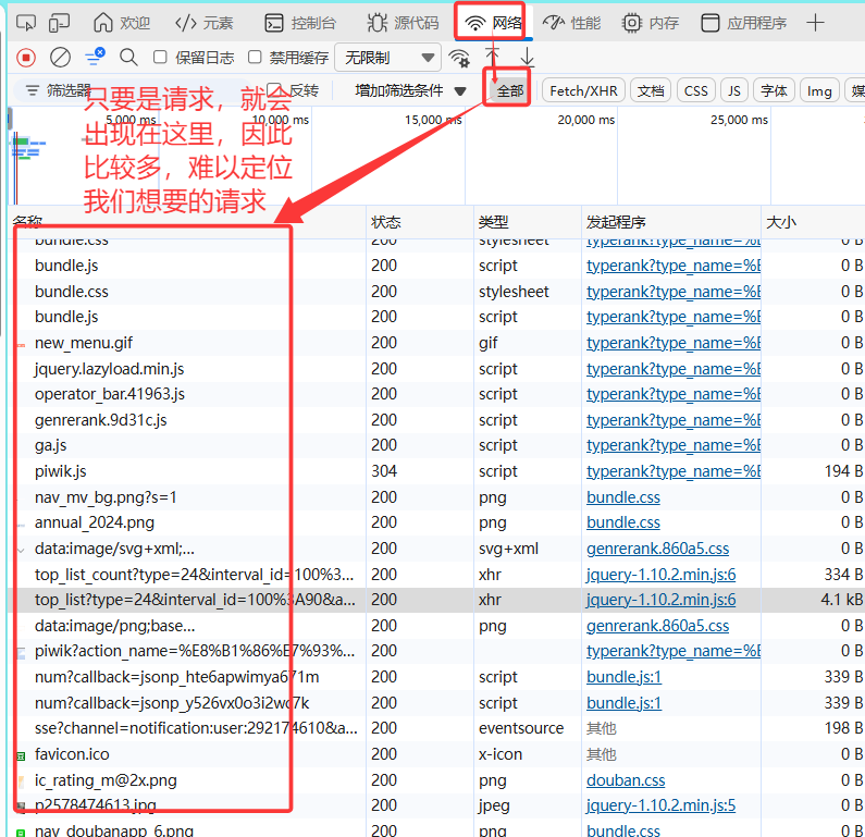 右击网页->检查->网络->全部
