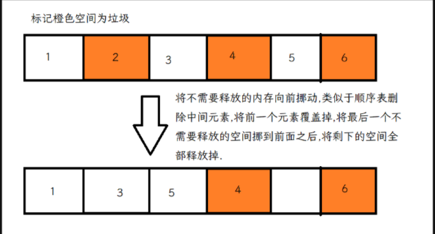 这种策略,就是直接把垃圾对象的内存释放,但是这个方式的缺点就是会产生内存碎片.