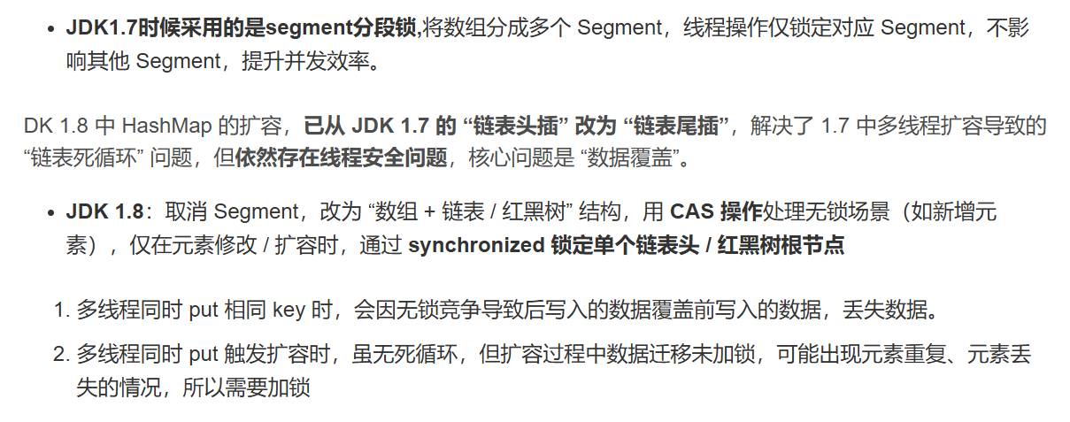 扩容机制:当桶内元素总数超过阈值(容量*负载因子),则进行扩容,将桶数组长度变为原来的二倍,并重新计算所有值的索引,但在jdk1.8之后,通过(哈希值& 旧桶数组长度)判断节点是否需要迁移到新桶,减少重哈希开销