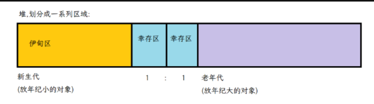 将堆内存分为两块,一块使用,一块用来放置将来存活的对象,这样会造成空间浪费,且如果存活的对象太多,则复制成本就有点大了
