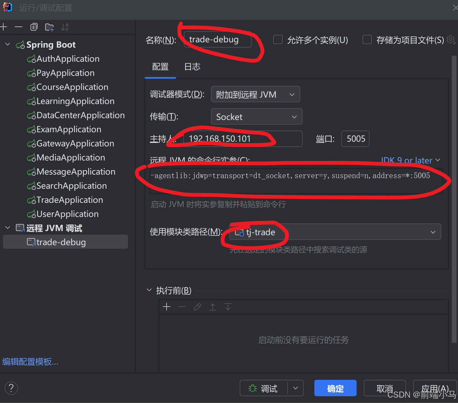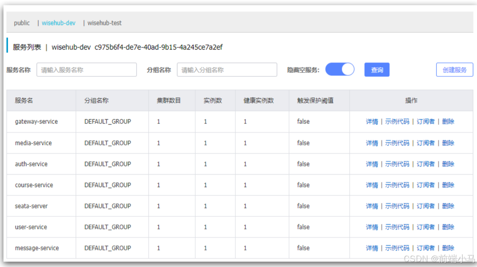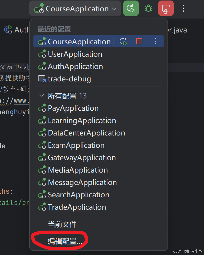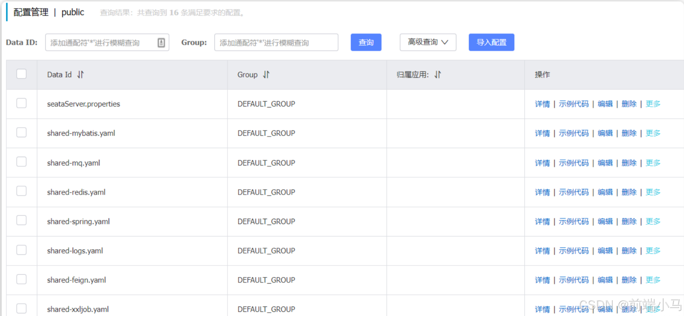 FallbackConig类:@Configuration public class FallbackConfig {@Beanpublic LearningClientFallback learningClientFallback(){return new LearningClientFallback();}@Beanpublic TradeClientFallback tradeClientFallback(){return new TradeClientFallback();}@Beanpublic UserClientFallback userClientFallback(){return new UserClientFallback();}@Beanpublic RemarkClientFallback remarkClientFallback(){return new RemarkClientFallback();} }这样所有在其中定义的fallback类都会被加载了。