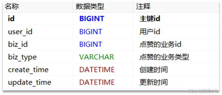 由于需要记录业务id、业务类型、点赞数三个信息: