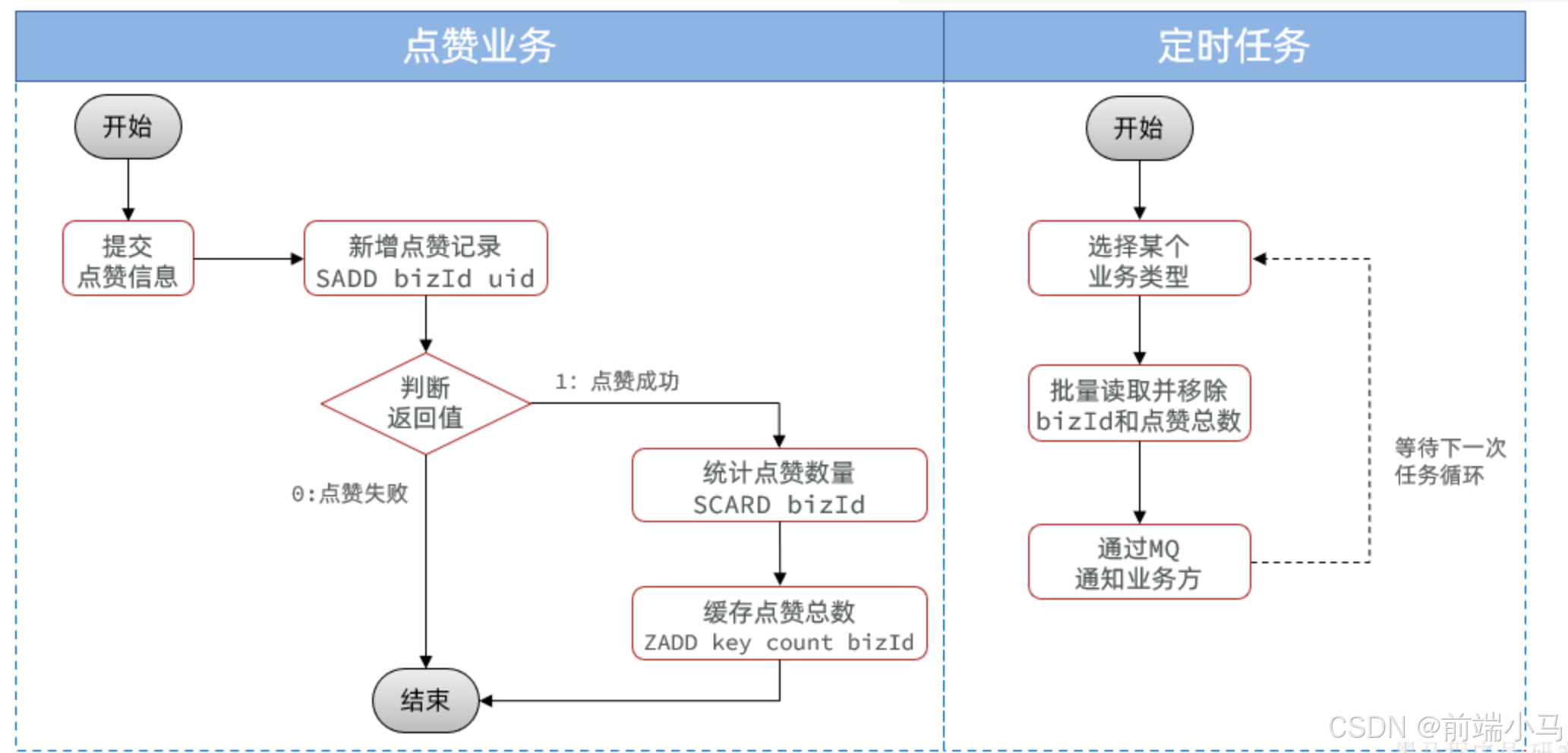 点赞成功后,会更新点赞总数并写入Redis中。而我们需要定时读取这些点赞总数的变更数据,通过MQ发送给业务方。这就需要定时任务来实现了。