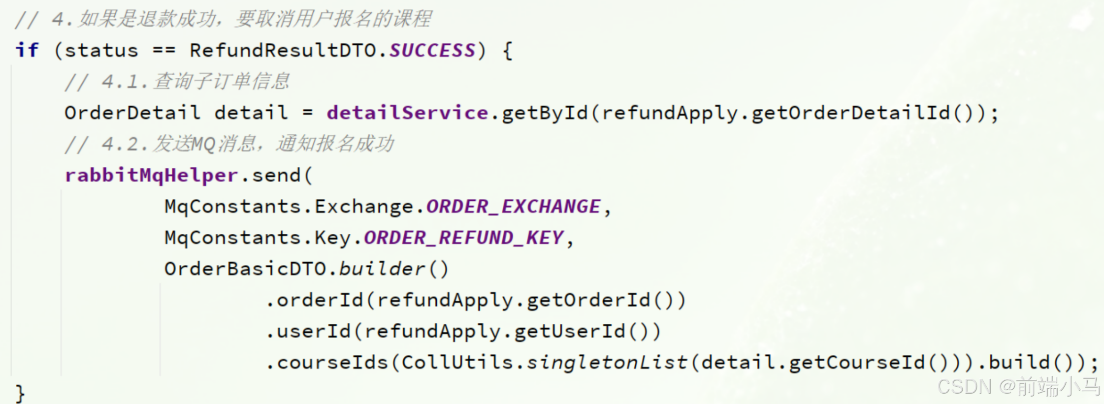 需要注意的是,由于在定时任务中一次最多处理20条数据,这些数据就需要通过MQ一次发送到业务方,也就是说MQ的消息体变成了一个集合