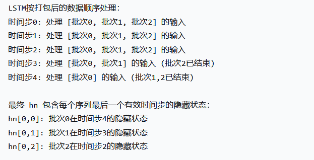 packed_output, (hn, cn) = lstm(packed_input) # 前向传播