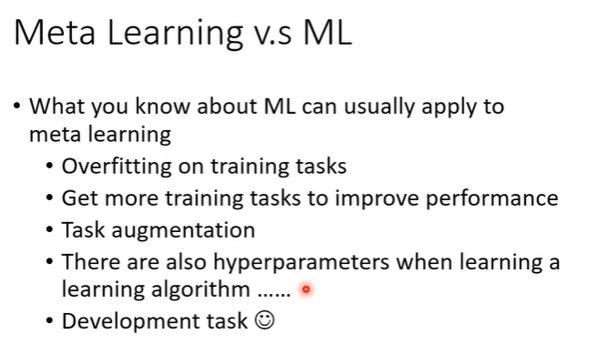machine learning和meta learning也有许多相似的地方,例如overfitting问题,解决方法(收集更多资料)都是同样适用的。