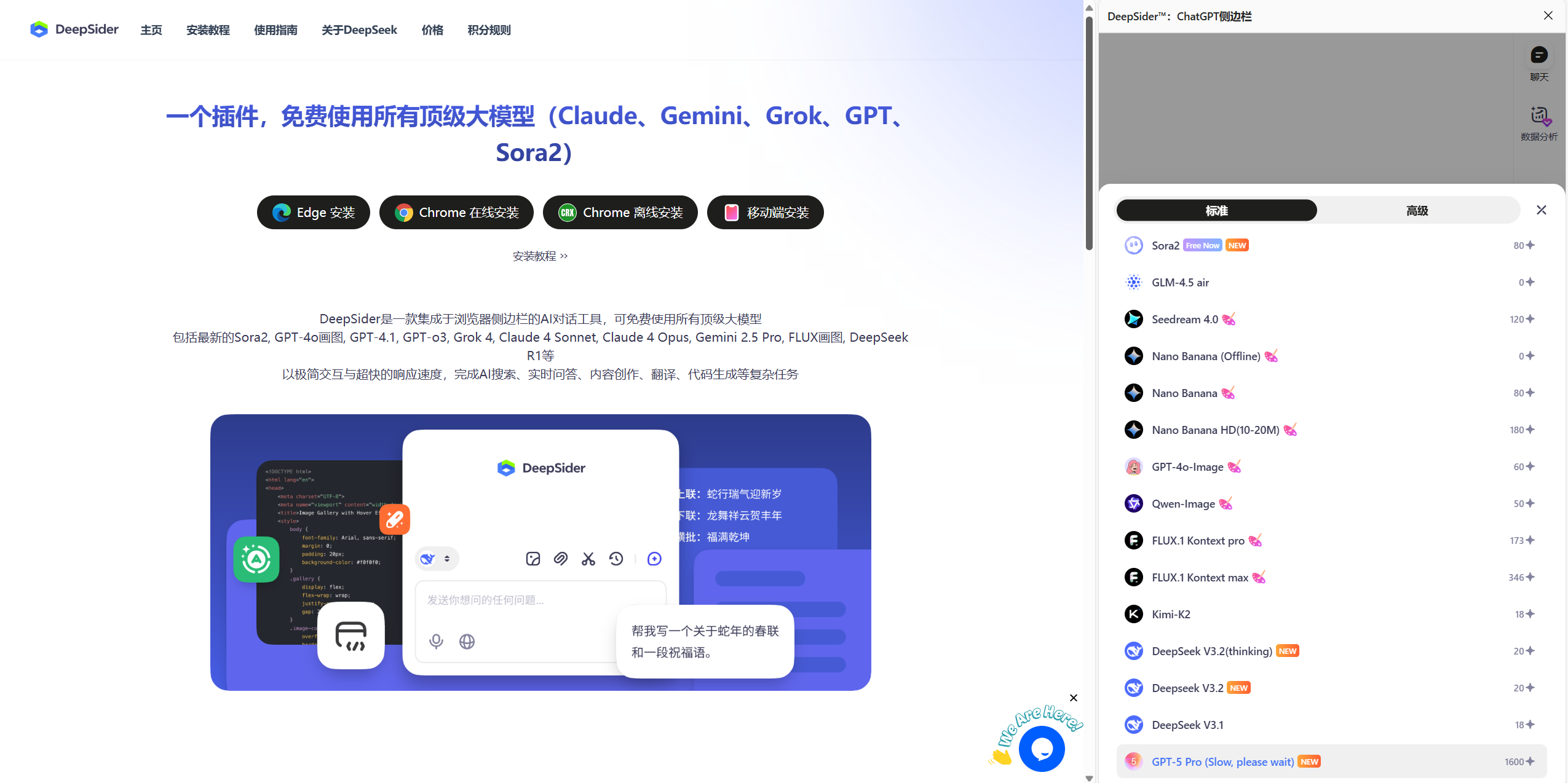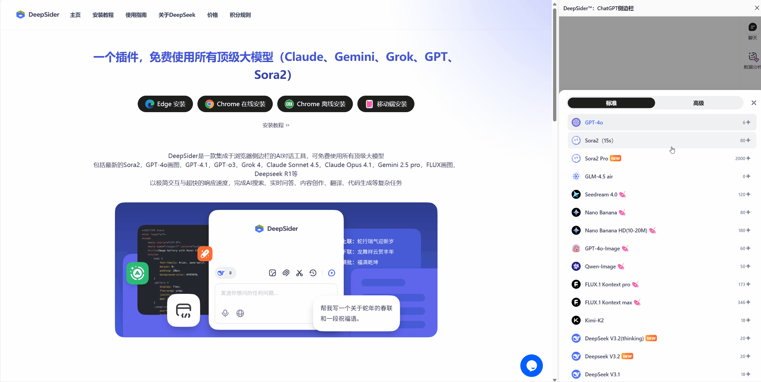 打开DeepSider官网,根据你的浏览器找到安装入口(Chrome可选择离线安装)。