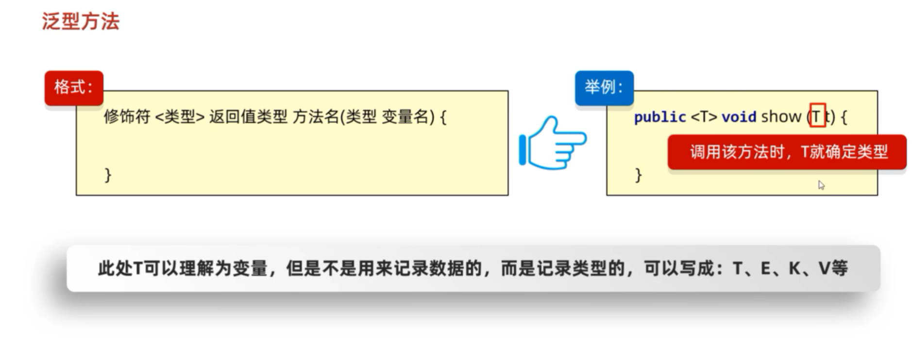- 就像方法可以接收参数一样,类/方法也可以接收“类型”作为参数