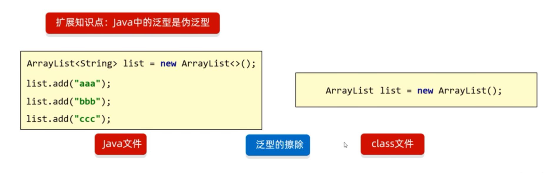 Java中的泛型是伪泛型,集合的限定是字符串内,仅仅只是在编译的时候检查是否是字符串,当数据真正添加到集合中的时候,集合还是会把这些数据当成Object类型来处理。拿出来用的时候,底层会做一个强转成字符串类型。