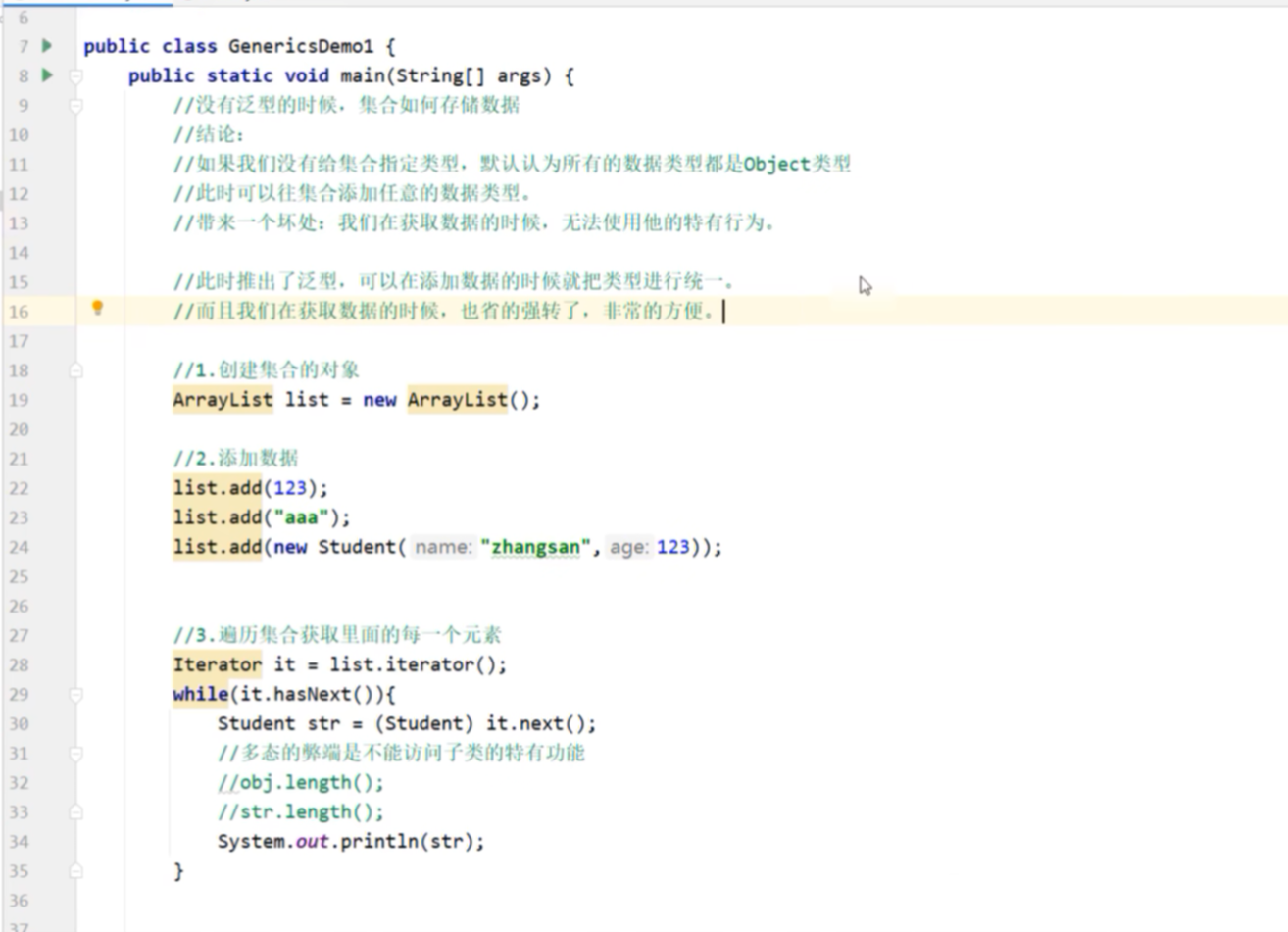 // 2.集合中的数据类型不确定,但是集合中的数据类型是继承关系1.6 练习