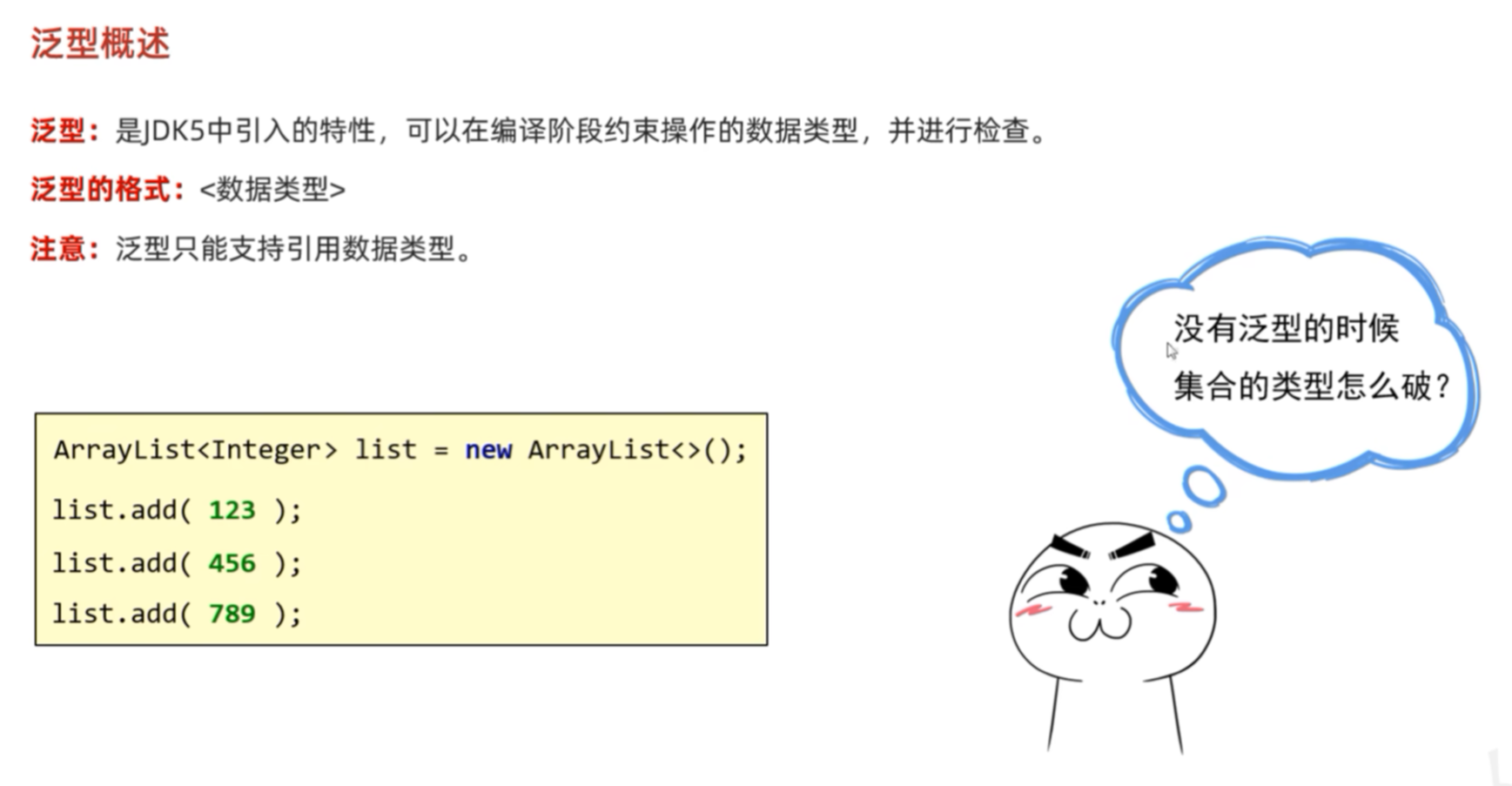 | 1. 类型安全 | 运行时才报错(如 ClassCastException) | 编译期检查,提前发现问题 |