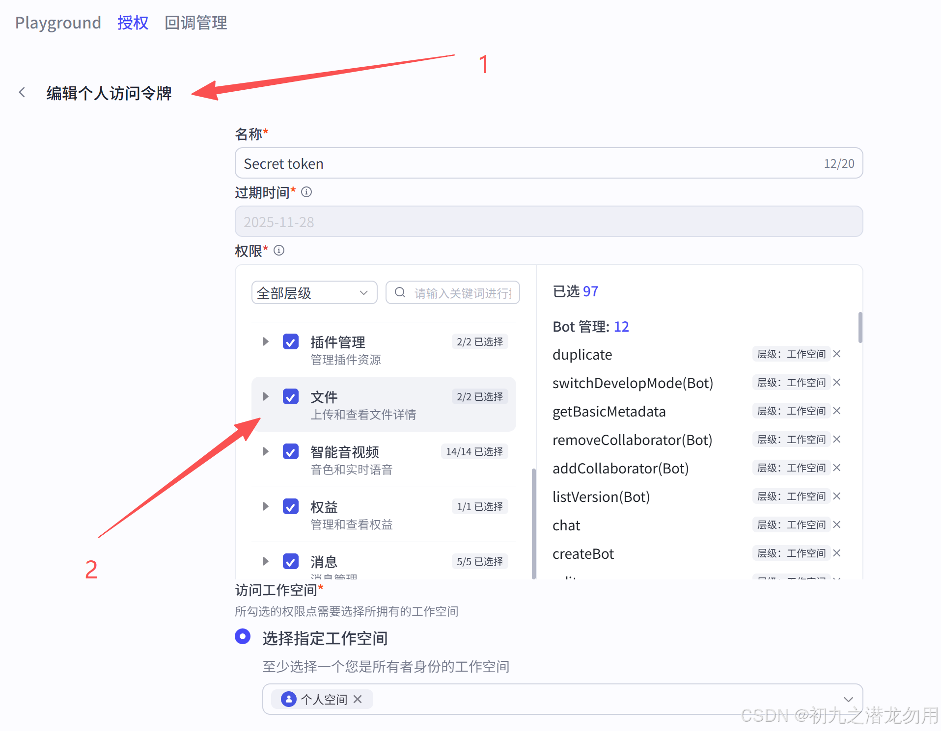 另外,我们需要编辑个人访问令牌的 API 列表授权功能,如下图: