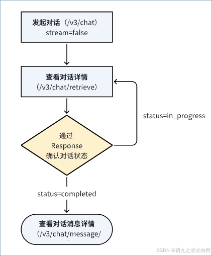{ApiUrl = "https://api.coze.cn/v3/chat/retrieve?" + paras;WebService ws = new WebService();string[] headers = new string[2];headers[0] = "Authorization:Bearer " + ApiKey + "";headers[1] = "Content-Type:application/json";ErrorMessage = "";ResultJson = "";string rs = GetResponseResult(ApiUrl, Encoding.UTF8, "GET", "", headers);ErrorMessage = ws.ErrorMessage;ResultJson = rs;