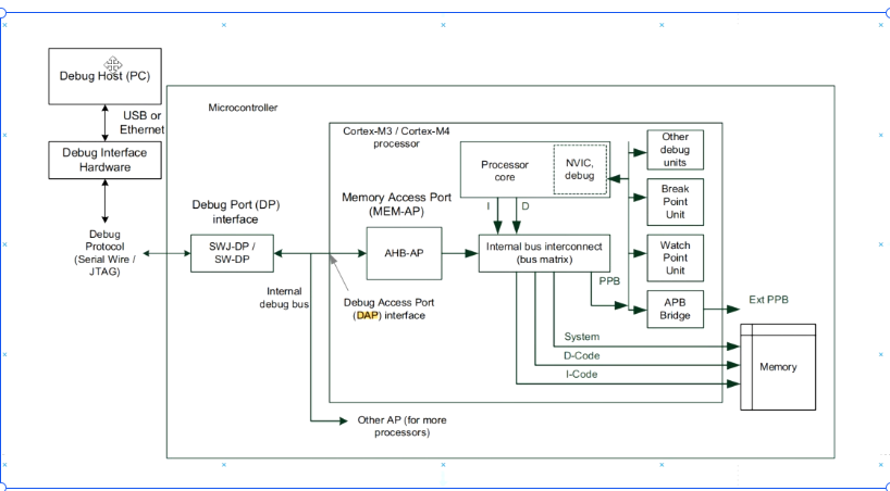 AHB Access Port就会接再那个debug口(SW-DP or SWJ-DP),那么就可以和我们的系统进行一个交互