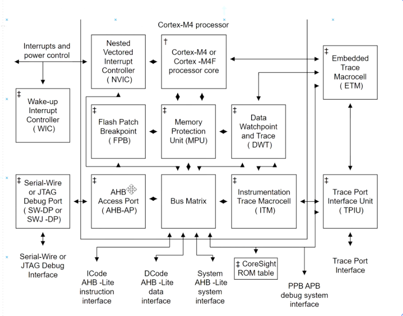 NVIC 调试模块(NVIC, debug):嵌套向量中断控制器的调试组件,支持中断相关的调试操作。