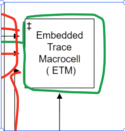 与上面不同 通过ETM单元 可以直接与cpu DWT和Bus Matrix对接,这可以让cpu没有任何的延迟,直接获取cpu的指令