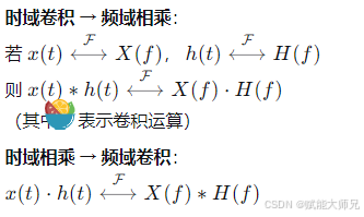 卷积定理是傅里叶变换中最强大、最实用的特性之一。它建立了时域中复杂的卷积运算与频域中简单的乘法运算之间的等价关系。