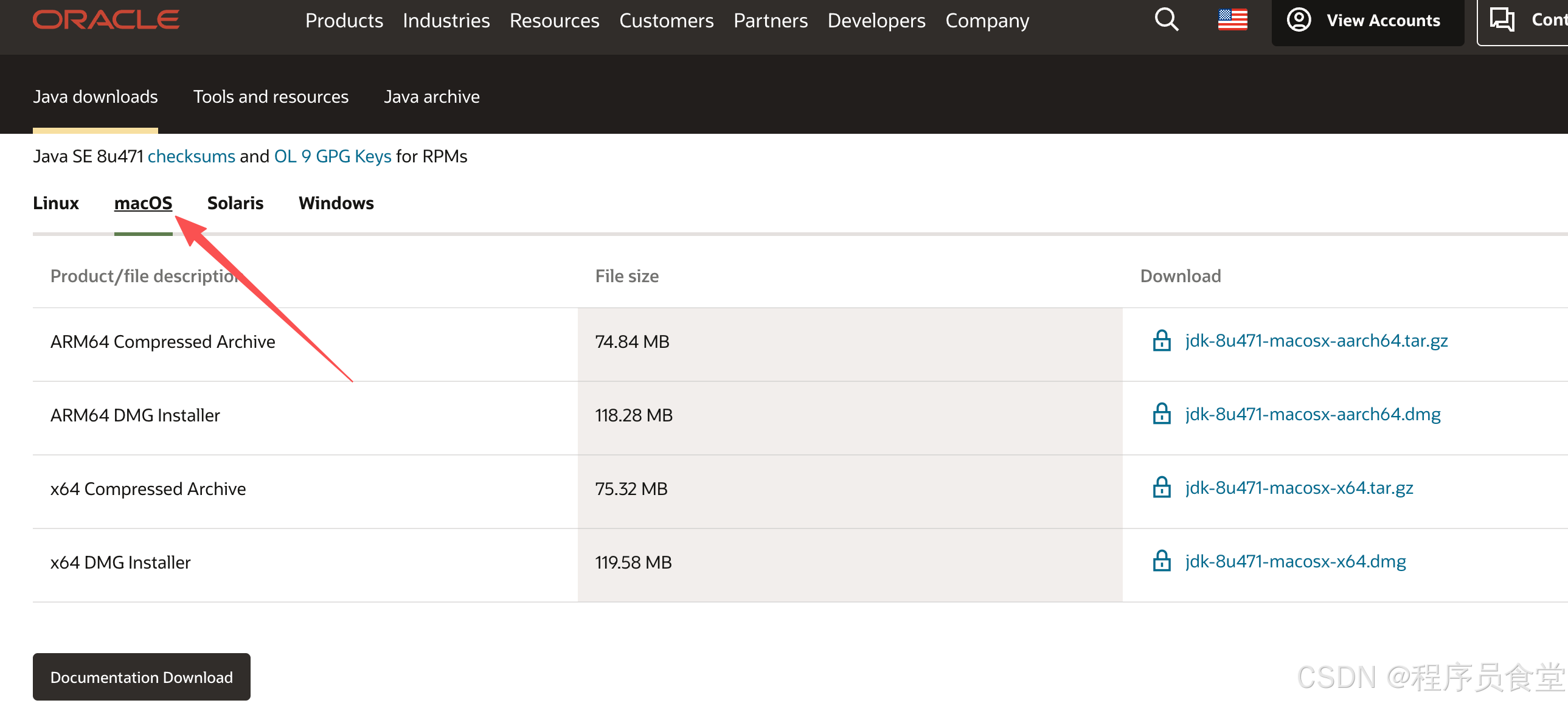 oracle 下载地址: https://www.oracle.com/java/technologies/downloads/#java8-mac
