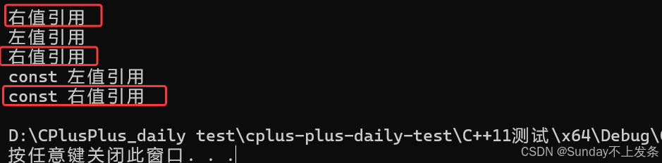 }void Test05() {Function(10); // 传右值int a;Function(a); // 传左值Function(move(a)); // 传右值const int b = 8;Function(b); // 传const 左值Function(move(b)); // 传const 右值