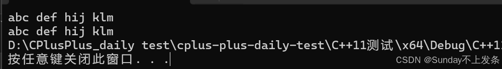 {vector<string> st1({ "abc","def","hij","klm" });vector<string> st2(initializer_list<string>{ "abc","def","hij","klm" });for (auto e : st1) { cout << e << " "; }cout << endl;for (auto a : st2) { cout << a << " "; }