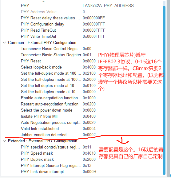 - PHY 地址设置:通过 LED0 和 LED1 引脚的电平进行配置。