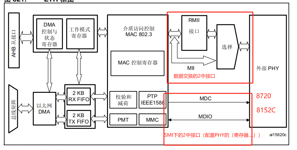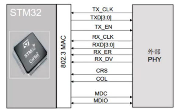 - 接口作用:降低 10/100 Mbit/s 下微控制器以太网外设与外部 PHY 间的引脚数。